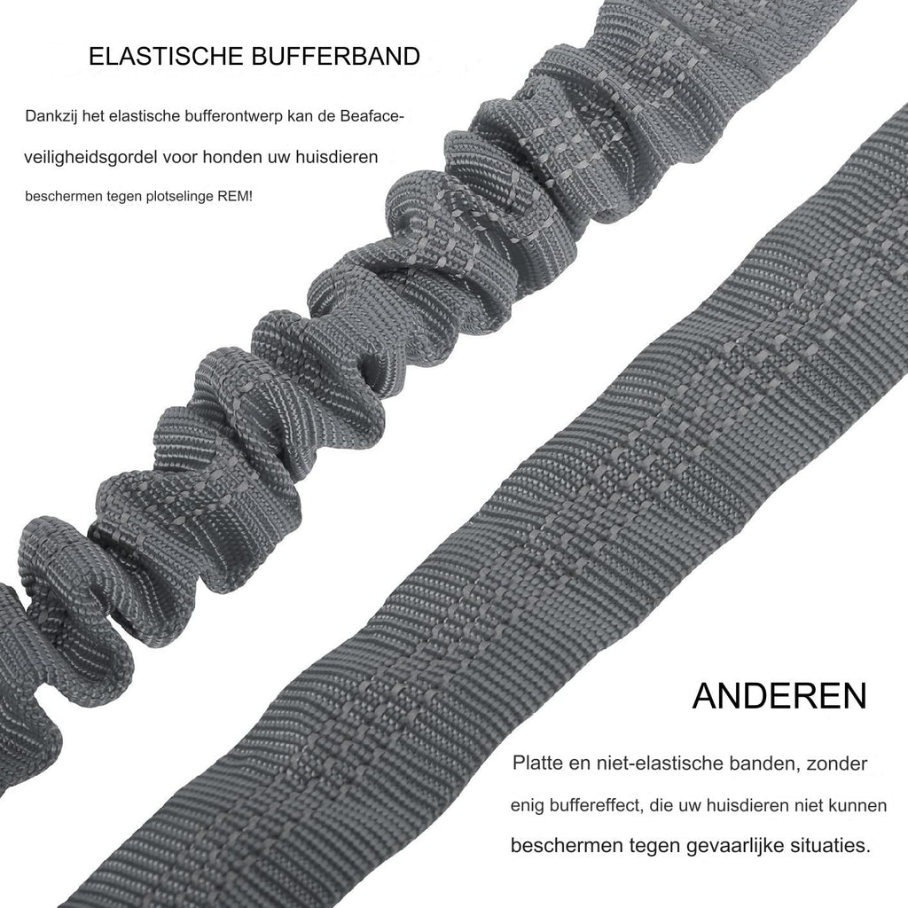 Houd uw huisdier veilig tijdens het reizen met deze verstelbare hoofdsteun autogordel voor honden en katten. De Beaface autogordel wordt bevestigd aan de hoofdsteun in plaats van de autogordelgesp, waardoor deze makkelijk kan worden gebruikt in elk voertuig. Het verstelbare elastische ontwerp (46 cm tot 75 cm) zorgt voor een comfortabele pasvorm voor honden van alle maten, van kleine puppy’s tot grote honden. De nylon bungee buffer en de 360° draaibare clip zorgen ervoor dat uw huisdier zich vrij en comfortabel voelt tijdens de rit, of het nu zit, staat, ligt of leunt. Hoogwaardige materialen en een robuuste sluiting zorgen voor veiligheid en duurzaamheid, ideaal voor dagelijkse autotrips en buitenactiviteiten.
