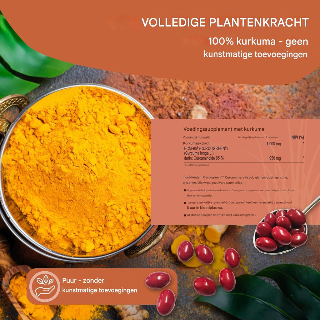 Bevat een hoogwaardig curcumine-extract met natuurlijke essentiële oliën uit kurkuma, waardoor het lichaam de werkzame stoffen tot 7 keer beter kan opnemen. -
