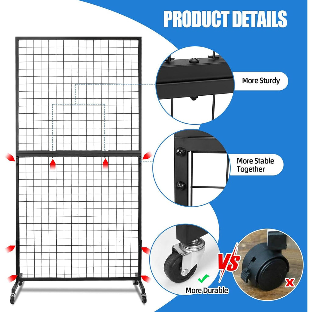 Creëer een professionele presentatie met dit duurzame en verrijdbare 3x6 ft gridwall displayrek — stijlvol, sterk en ontworpen voor langdurig gebruik in winkel- of beursomgevingen.