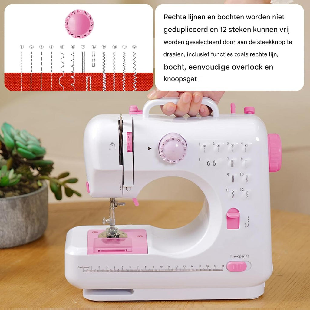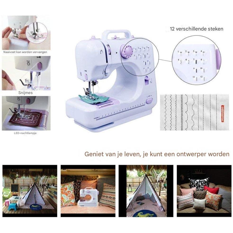 Deze elektrische naaimachine voor beginners is ontworpen voor eenvoud, functionaliteit en draagbaarheid. Met 12 ingebouwde steekpatronen, dubbele draadfunctionaliteit en een automatisch spoelmechanisme, is dit compacte model ideaal voor wie net begint met naaien of op zoek is naar een eenvoudig en betrouwbaar naaiapparaat voor huiselijk gebruik.