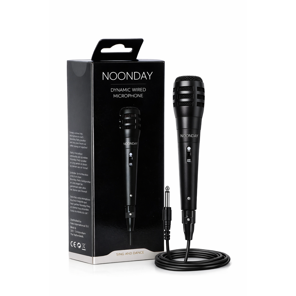 Laat je stem horen met de NOONDAY PARTY microfoon. Deze bedrade microfoon is ideaal voor karaoke, feestjes, live optredens of spraakgebruik. Sluit hem eenvoudig aan op speakers, versterkers en karaoke machines met een 6.3 mm jack aansluiting.