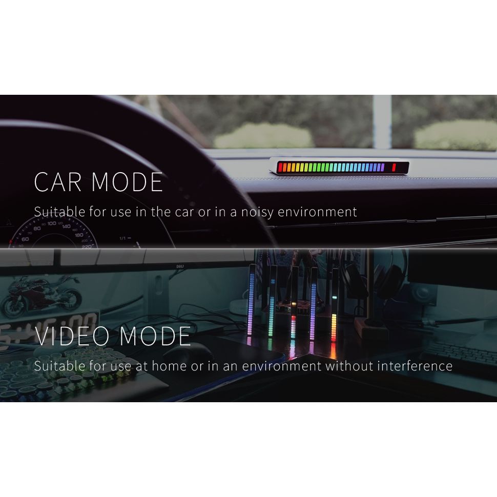 Breng muziek tot leven met deze RGB ritme lamp audio visualizer. De slimme lichtbalk reageert direct op geluid en muziek en toont dynamische lichteffecten in meerdere kleuren. Perfect voor gaming setups, bureau, slaapkamer, auto of feestjes.