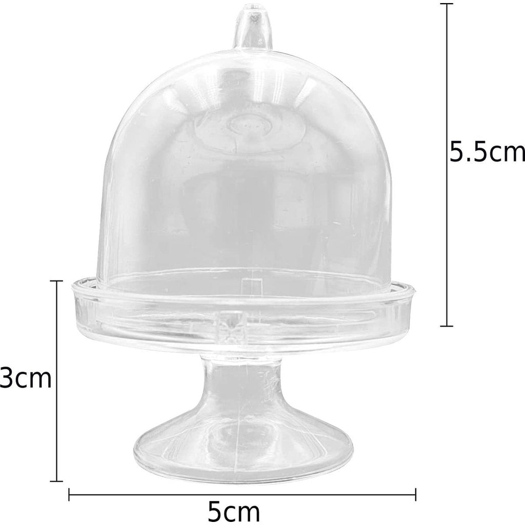 - Deze transparante van plastic gemaakte ministandaard kan uw desserts goed weergeven en de koepelafdekking kan het voedsel beschermen.