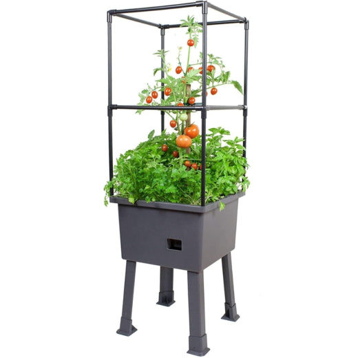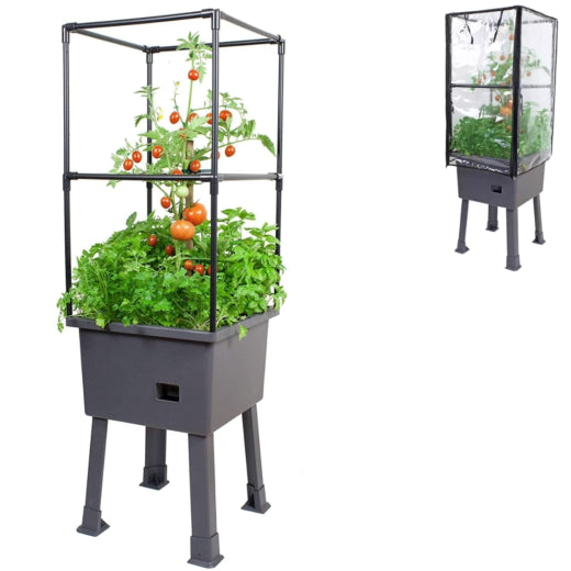 Deze verhoogde kweekbak combineert praktisch tuinieren met slim design. Dankzij het stevige kunststof op pootjes kun je comfortabel planten verzorgen zonder te bukken. Het verstelbare frame met afneembare hoes creëert eenvoudig een mini kas, ideaal om jonge planten te beschermen en optimale groeiomstandigheden te bieden. Het geïntegreerde bewateringssysteem zorgt ervoor dat je planten enkele dagen van water worden voorzien – ideaal voor balkon, terras, kleine tuin of zelfs binnenshuis.