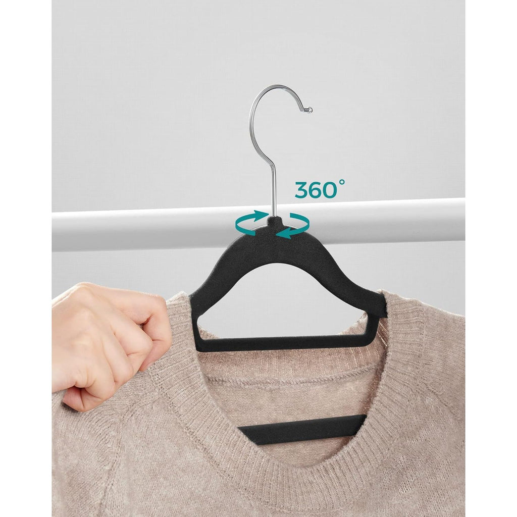 De fluweelachtige coating voorkomt dat kleding van de hanger glijdt — ideaal voor zijde, satijn of fijne stoffen.