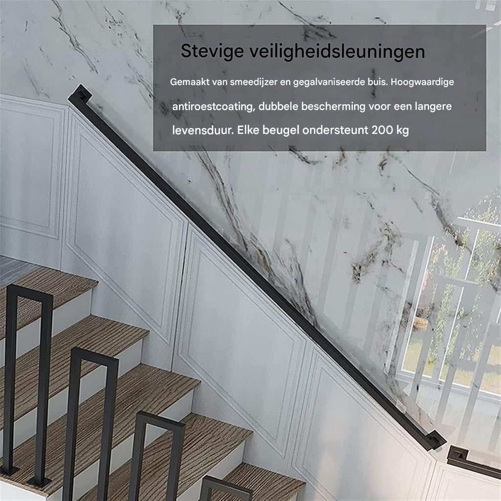 Deze moderne metalen trapleuning combineert industriële stijl met duurzame veiligheid. Gemaakt van verzinkt staal met een dubbele antiroestcoating, is deze leuning geschikt voor zowel binnen- als buitengebruik. De gladde afwerking zorgt voor een comfortabele grip, terwijl het robuuste ontwerp tot 200 kg draagkracht per beugel biedt.