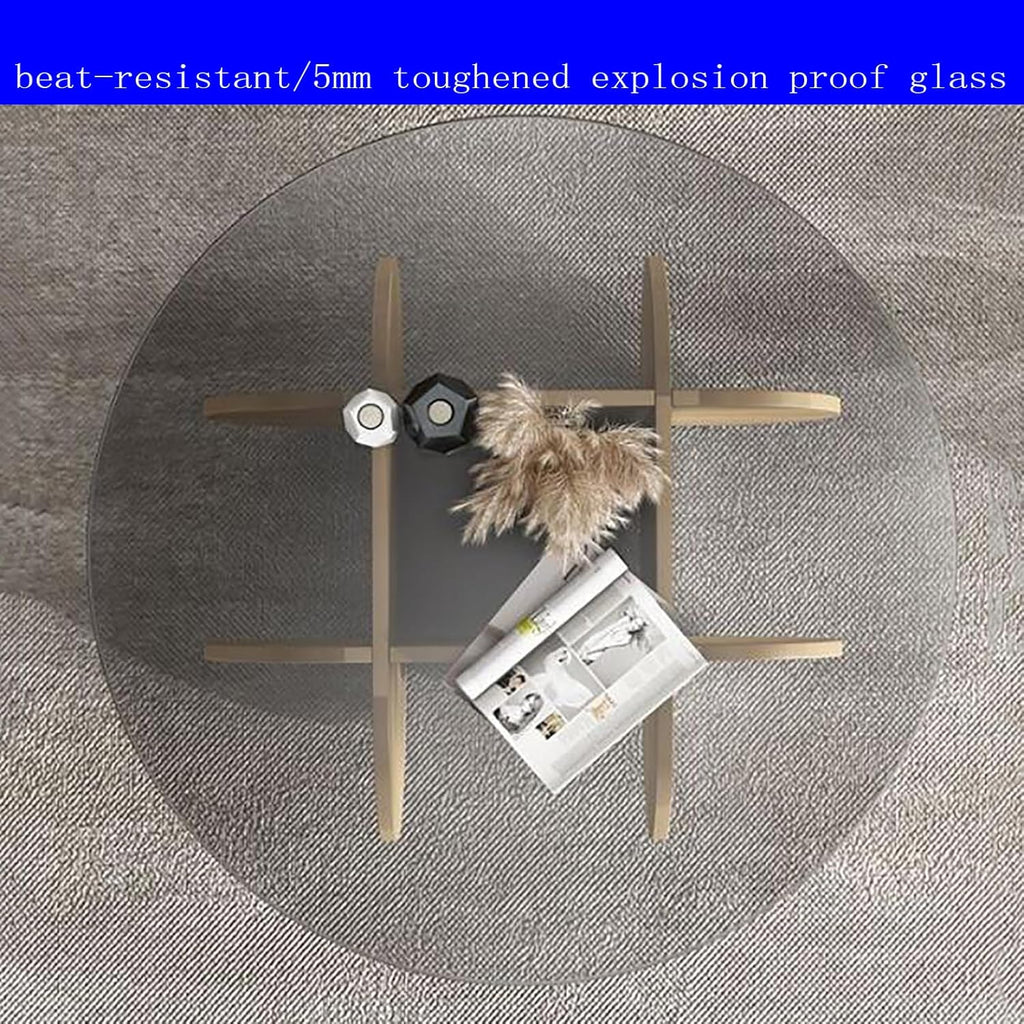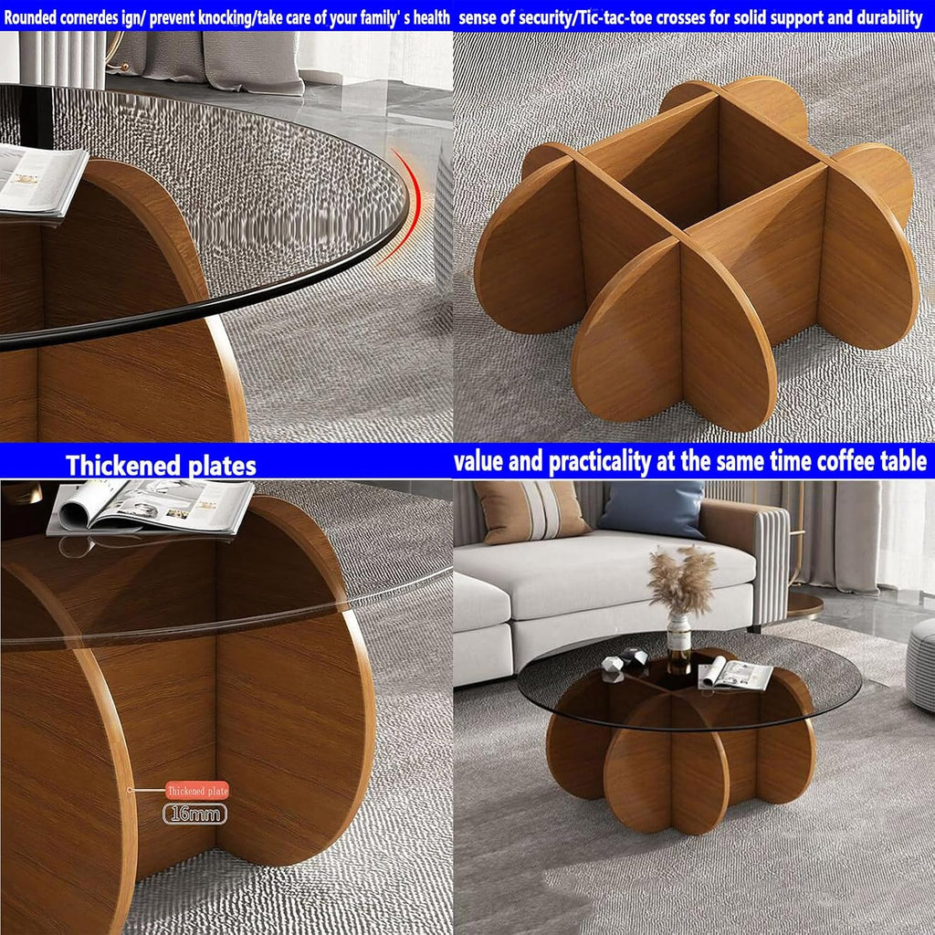 Ronde Salontafel met Glazen Blad en Massief Houten Onderstel – Moderne Centrale Tafel voor Woonkamer of Terras – Bijzettafel van Gehard Glas