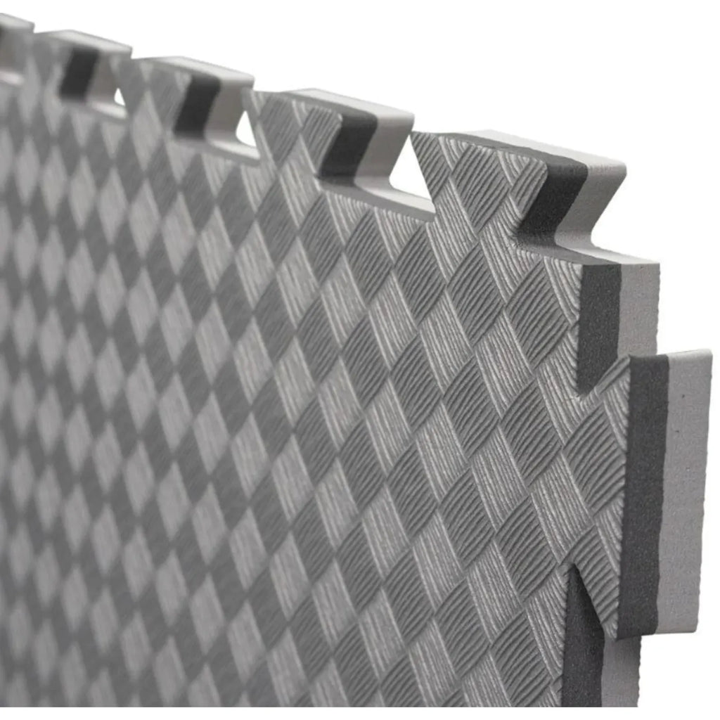 Creëer een comfortabele, beschermende en stijlvolle sportvloer met deze set van 6 EVA schuim puzzelmatten in zwart/grijs. Elke mat meet 1 x 1 meter en is 2 cm dik, wat zorgt voor uitstekende demping, grip en ondersteuning tijdens intensieve trainingen zoals fitness, yoga, krachttraining of kampeeractiviteiten.