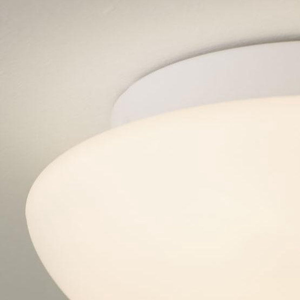 Deze plafondlamp is ontworpen met een klassieke uitstraling, voorzien van een witte metalen basis en een matte glazen kap die het licht zacht verspreidt. Het armatuur is geschikt voor een E27 lichtbron (niet meegeleverd) en is eenvoudig te monteren op elk plafond dankzij het opbouwsysteem.